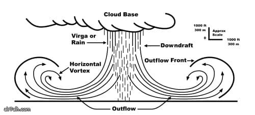 ولو حدثت العملية بسرعة كافية وعلى مساحة كبيرة بما يكفى فسنحصل على عمود كبير من الهواء البارد يسقط الى الأسفل بإتجاه الأرض بسرعة وينتشر على الأرض بقوة كبيرة ويحدث كأنفجار صغير.