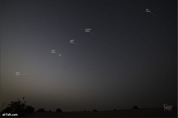 ونشر حساب "القبة السماوية" الإماراتي، المختص بالفلك عبر "تويتر" صورة للظاهرة مع بيان وضعيات الكواكب، أرفقها بشرح حول طبيعة الظاهرة ومعلومات عنها.